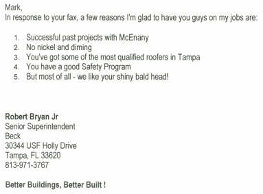 Some of our customers include Walt Disney World, Tampa Bay Performing Arts Center, Tampa General Hospital, J-M-C Development, Verizon, Trammal Crow Resource Property Management, Progress Energy and more. We look forward to adding you to our list of satisfied customers. You'll soon understand why so many have worked with McEnany Roofing and Contracting for so many years.